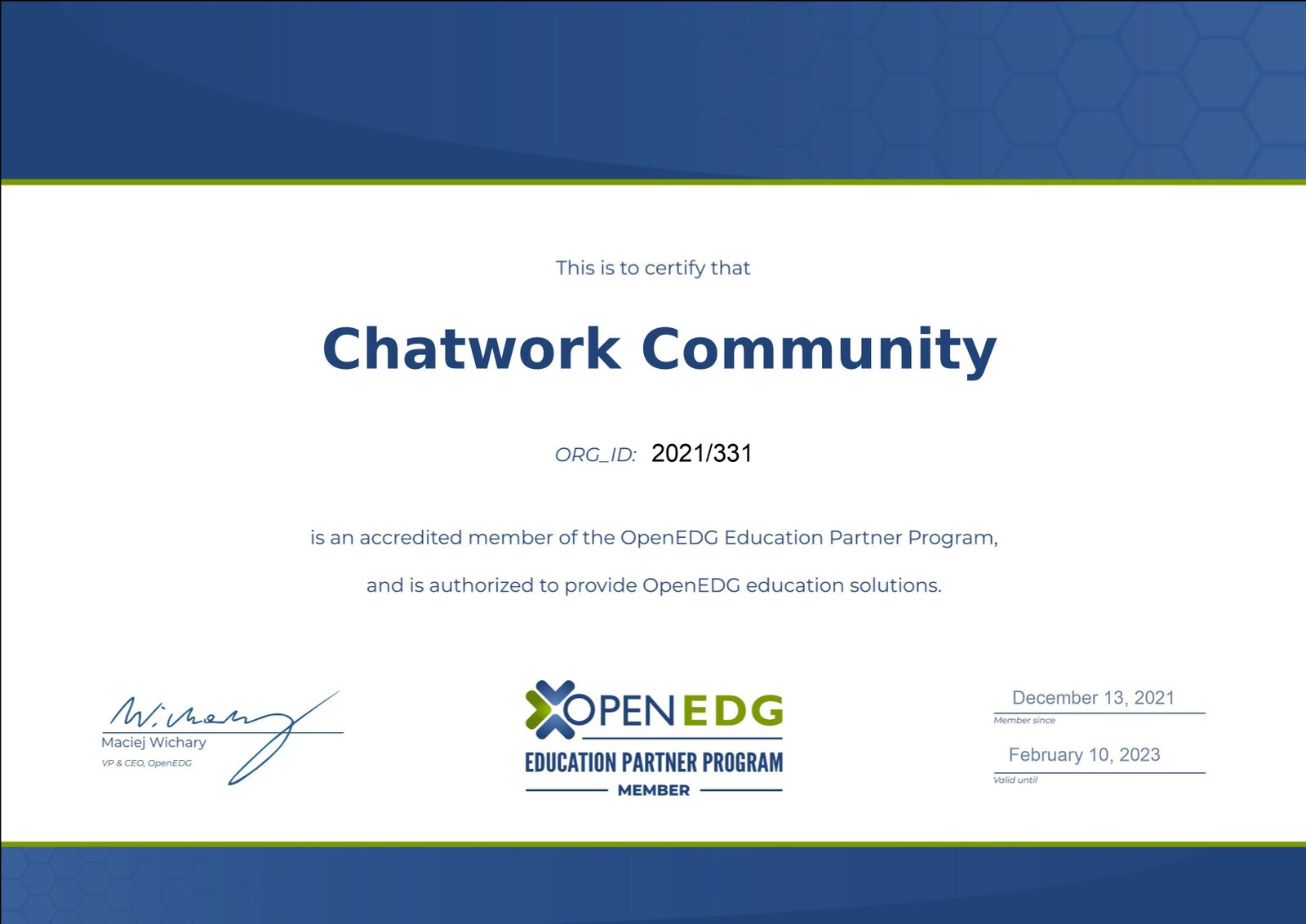 We have become an accredited member of the OpenEDG Education Partner Program and are authorized to provide OpenEDG education solutions for December 13, 2021. On May 20, 2022, Python Institute updated and published Chatwork information to the global educational partner network. And now, you can access and check our action on the Python Institute's website.